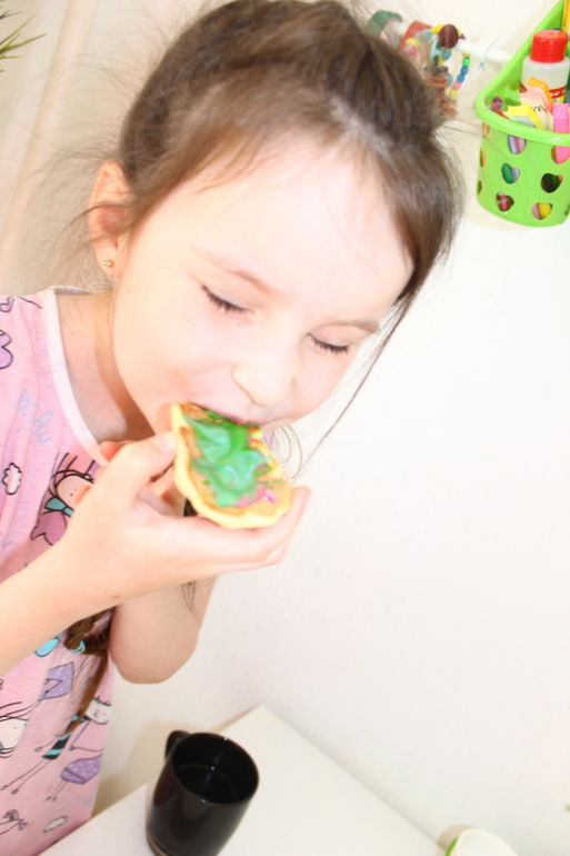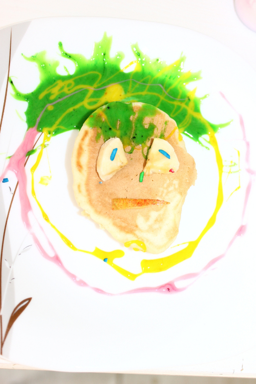Я уже писала,что дети любят мне помогать. Особенно печь что-нибудь. Я этого как раз не люблю, но желание стараюсь не отбивать. Совместные оладьи и их украшение сгущенкой ( с красителями пищевыми) . Вы ели когда-нибудь радугу?
