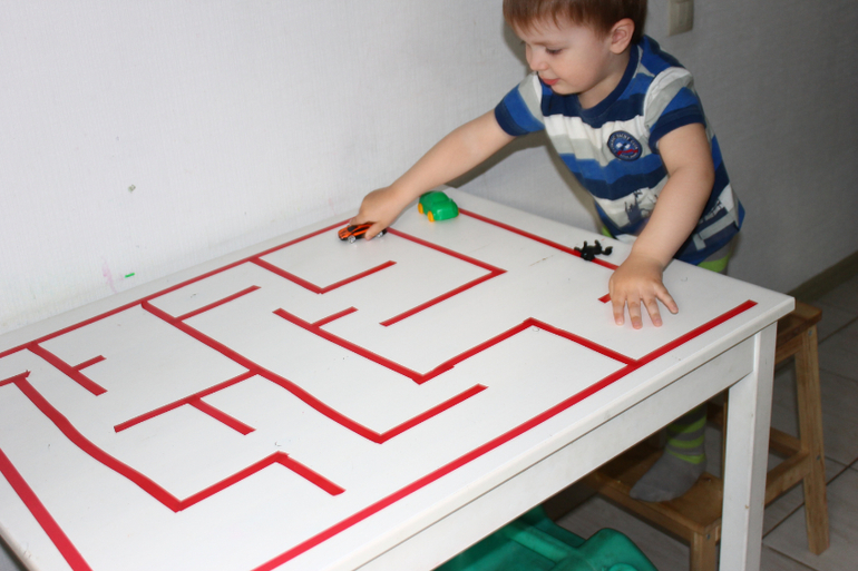 Кухоный стол. Что с ним можно делать? как играть? Да как угодно.Например стол может стать лабиринтом для машин,зверей,пальчиков,мячика,помпона и пр.
