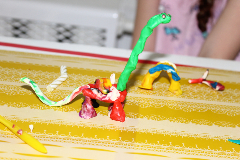 Но самим детям творить нравится больше. Вот сегодня Александра слепила брахиозавра
