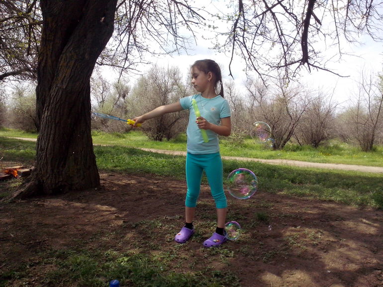 Куда пойти с ребенком? (Все о досуге с ребенком и семьей)У нас было тепло и 4 мая мы поехали на природу . Рядом речка(правда воды в ней мало и поэтому она стала цвести), деревья, травка зеленая. Температура воздуха была отличная, что в футболке было местами жарко. Правда когда солнышко пряталось за тучку, становилось прохладно. Были мы там часа 4, играли в мяч, который купили в Спортмастере, он у нас начал сдуваться, вот такие там мячи... теперь его только выбросить.