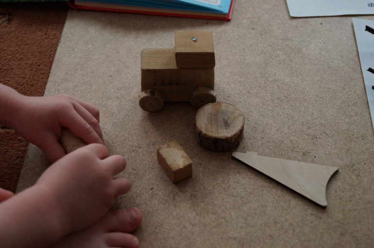 6. Посмотрели на деревянные предметы, вспомнили ,что дерево не тонет в воде. И еще рассказала, что по спилу дерева, по колечкам на нем, можно узнать его возраст.