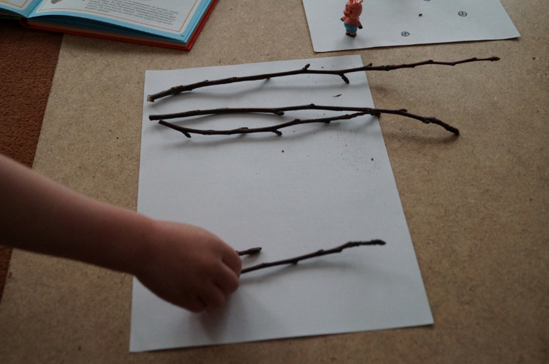4. Рассмотрели веточки разных размеров, разложили по длине.