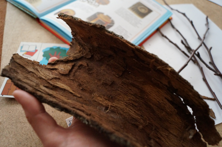 2. А вот и сам кусочек коры, в котором уже поработали личинки жука короеда типографа. И соответственно дерево теперь пригодно только для растопки.Рассказ про короедов настолько понравился Дане, что весь последующий день разговоры были про жука)