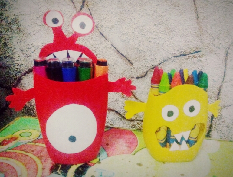 Да тут особо и рассказывать нечего))) нарисовала на бутылочек контур, ножницами вырезали. Из остатков вырезали ручки, приклеила на клеевой пистолет. Глаза, живот, рот сделала из обычной бумаги и на ПВА наклеила, но в дальнейшем переделала из самоклейки.