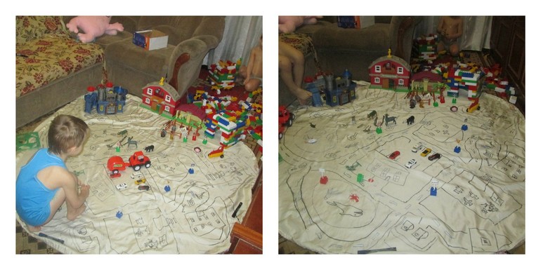 Ну вот здесь конструктор большой, замок, ферма - это все общее. Чаще в такие игрушки вдвоём играют, если кто-то взял первый и хочет играть сам, то второй отобрать не имеет право. А более мелкие игрушки у каждого свои, но они меняются ими и дают поиграть друг другу по настроению. Но это более новые игрушки. А все старые автоматически перешли в разряд общие по причине малолетства хозяевов при покупке этих игрушек, потому что никто уже не помнит где чьё)))