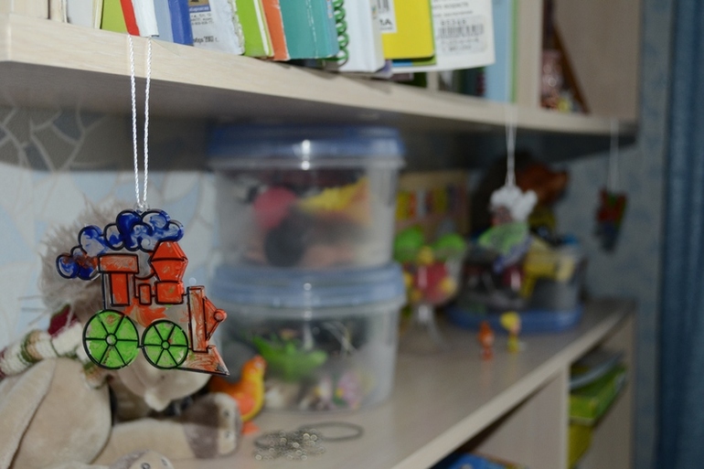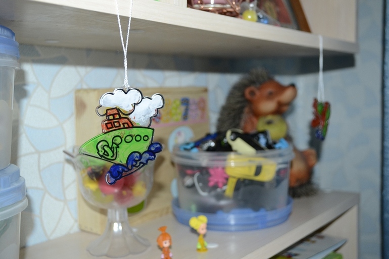 Полностью сам. Только цвета акрила выдавливала поочередно. Сначала на палитру зеленый выдавила и Миша закрасил все зеленные участки в фигурках.. потом он красный выбрал и синий с белым.