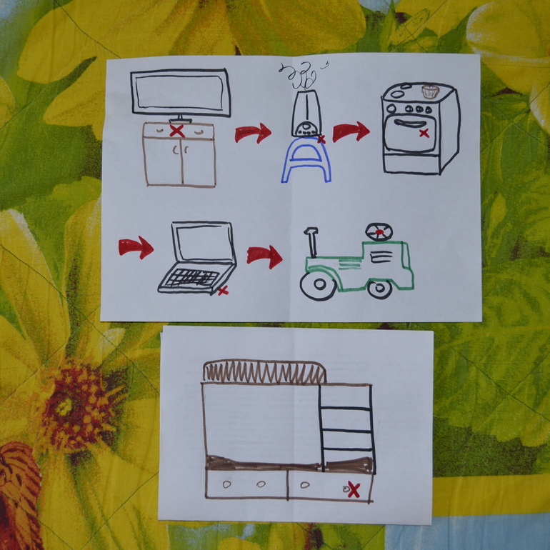 Думала не догадается, что на финишной картинке я намалевала двухъярусную кровать)) А нет - быстро сообразил и понёсся искать. Вот такая жёлтенькая вэлли ждала его в коробке, которая пряталась в выдвижном ящике кровати.
