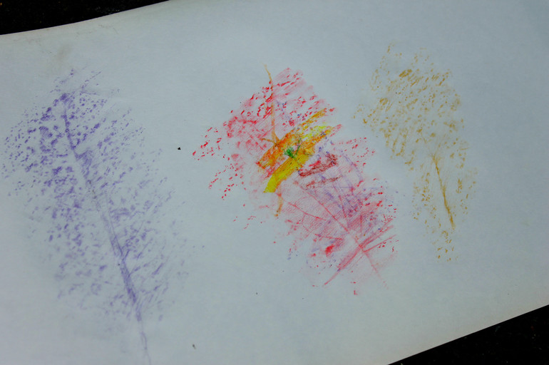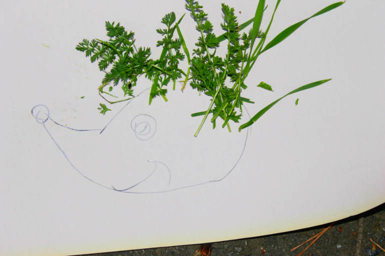 Все вместе сделали отпечатки листьев и ежика из травки