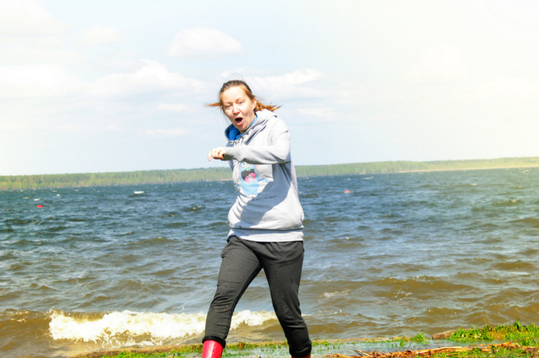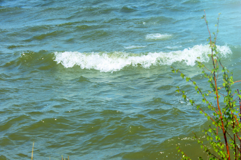 Озеро встретило нас сильным ветром, большущими волнами, белыми барашками и кучей брызг. Мы порезвились немного убегая от них, но все-равно намокли