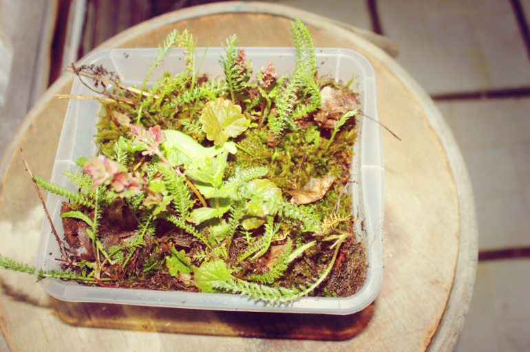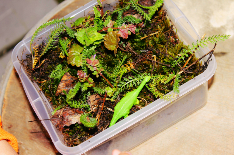 В завершении прогулки мы поселили у нас на даче самый настоящий мир, целую экосистему в коробке