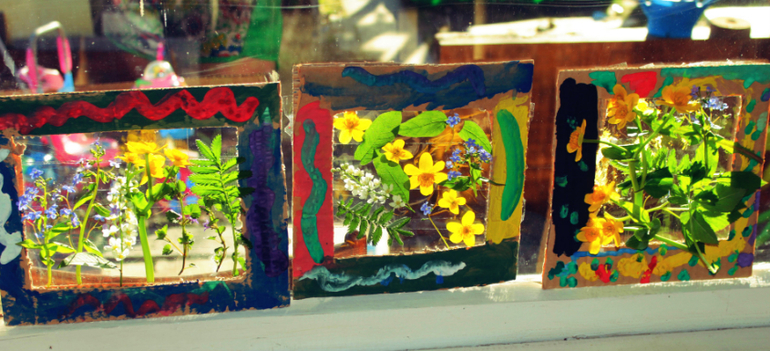 Ну и венчало весь этот творческий порыв такое вот действо. Из старой коробки сделаны были рамки, внутри скотч прозрачный и на него уже все,что душе угодно