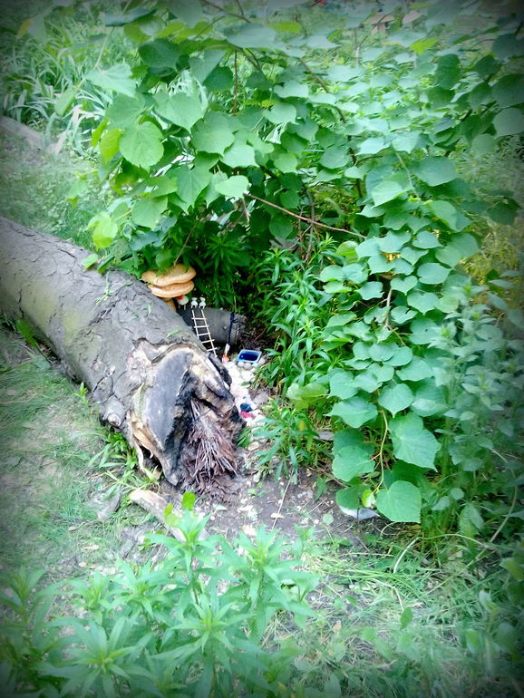 Не, Свет, мы же не в частном доме живём. Этот домик недалеко от детской площадки в кустах сделали.