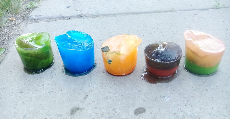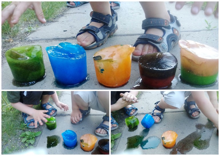 Мистер Умелец или Очумелые ручки (поделки, аппликации, интересные находки, идеи и задумки)Идея не нова. Заморозить подкрашенную воду в стаканах, воздушных шарах, силиконовых формах, предварительно положив внутрь маленькие игрушки и отдать детям на улице. Они сами находят применение таким вещам)))