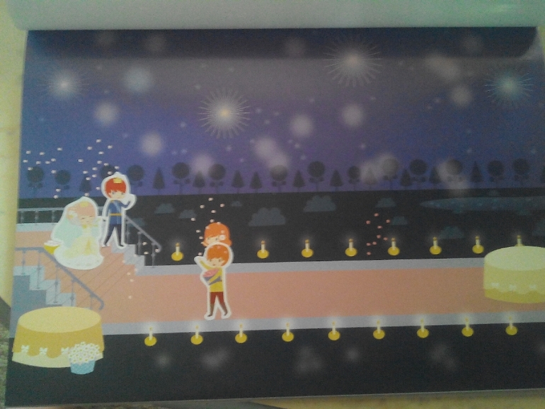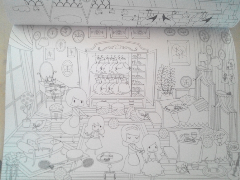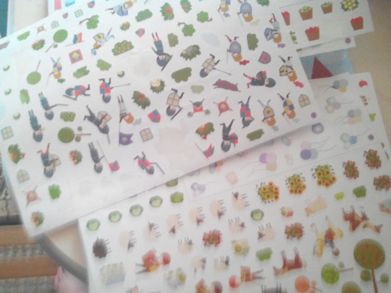 Итак - 12 панорамок на различные темы, от посадки помидоров в королевском саду, то торжественной церемонии бракосочетания . К каждой картинке свой лист с наклейками. Их столько, что можно придумать целый огромный рассказ, есть приятные прикольные мимишности, что так любят девочки.