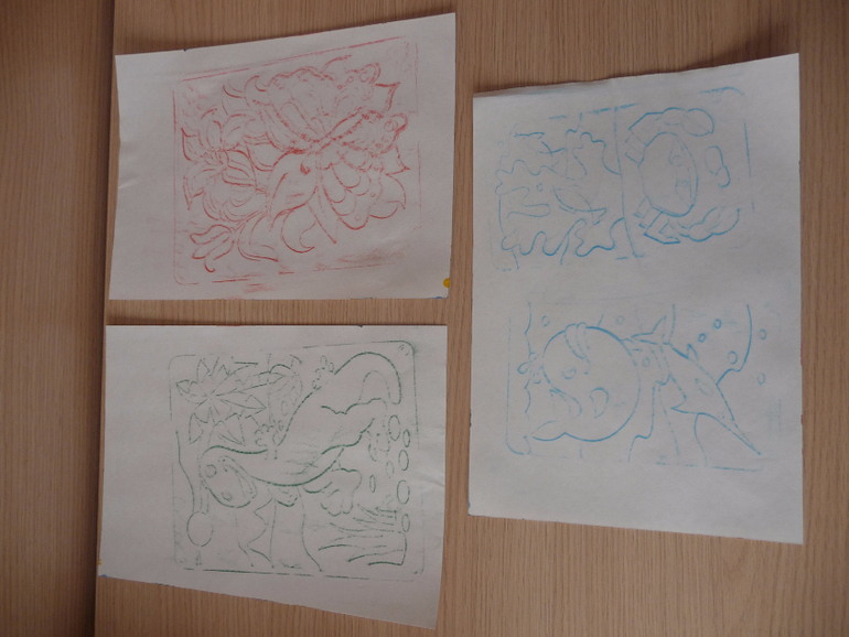 часто видела такие трафареты,как их использовать не знала :)))) просто покрасить их восковым карандашом? и перевернуть на листик бумаги или это бумагу сверху класть??