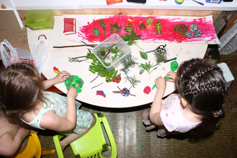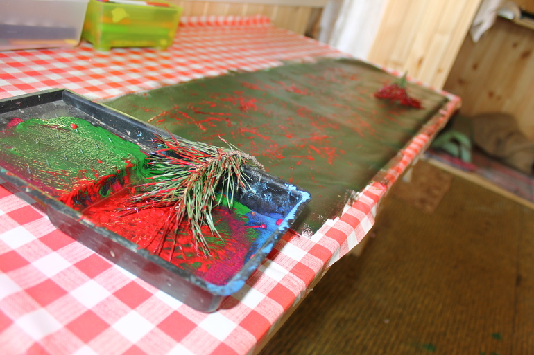 Рисование с помощью листьев, хвои, палок и пр. вместо кистей