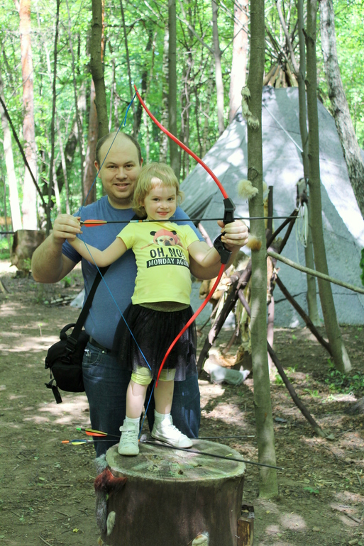 А еще можно пострелять из детского или взрослого лука - 100 руб за 5 стрел, забавное оказывается занятие