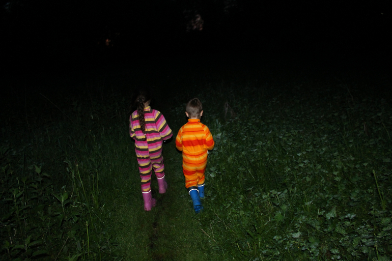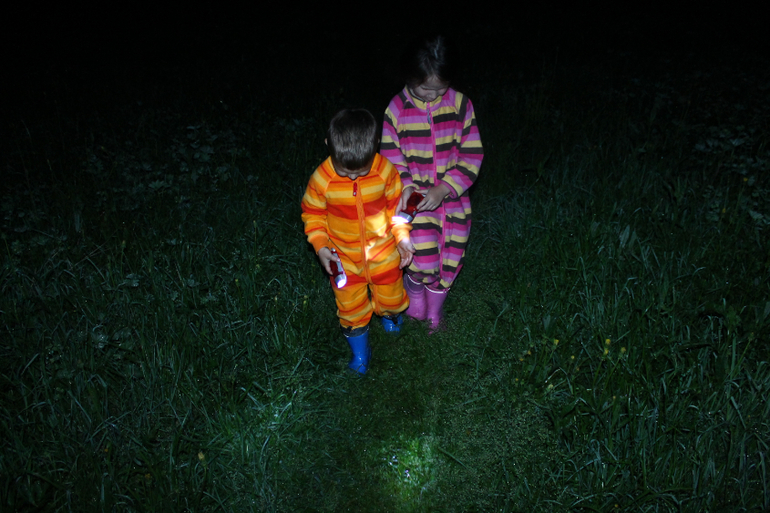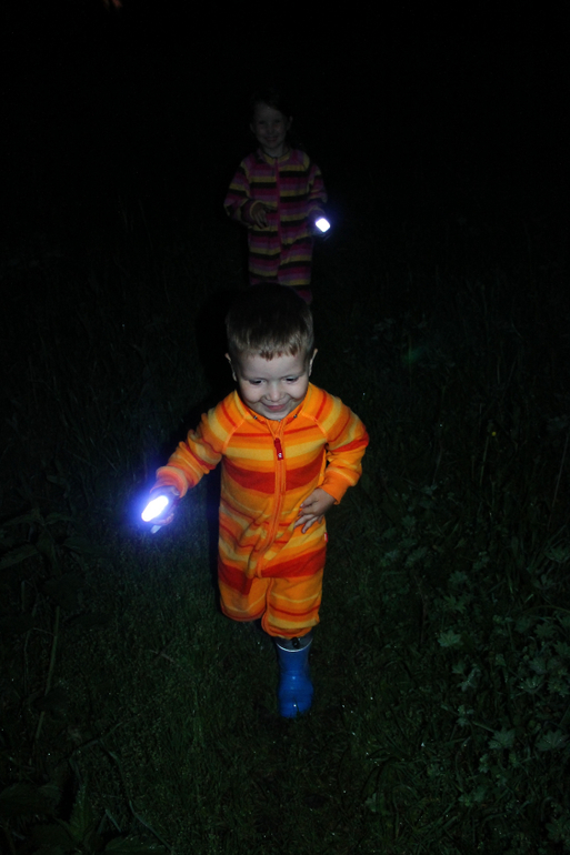 Спектакли показаны, зрители удовлетворены, актеры на залуженном выходном, а тут и ночь подоспела. Но у детей завод не кончился! А как же, новые фонарики лежат не опробованные! И отправились мы в ночь