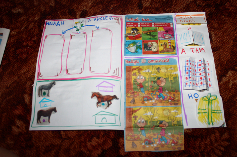 И небольшая ремарка, относительно детских кроссвордов. Лично для нас это отличное решение обучения чтению. Саша учится слышать звуки в словах,ранее ей удавалось (и то с большим трудом) вычленить первую и последнюю букву,теперь почти все буквы в слове. Что для чистого визуала (коим Саша является) довольно сложно.И еще небольшая шпаргалка. Когда она решает кроссворд,я рядом не сижу,а просто разговариваю с ней, иногда у нее возникает не уверенность в верном написании той или иной буквы и тогда на помощь приход ПУГОВИЧКА)))