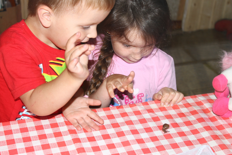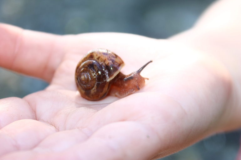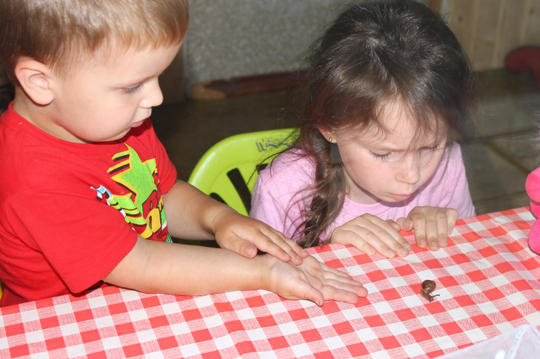 Вы даже не подозреваете как такая небольшая встреча взбудоражила детский ум. Вопросы сыпались один за другим. Что она ест, а где у нее глаза, а как она дышит, а почему после нее слизкая дорожка...