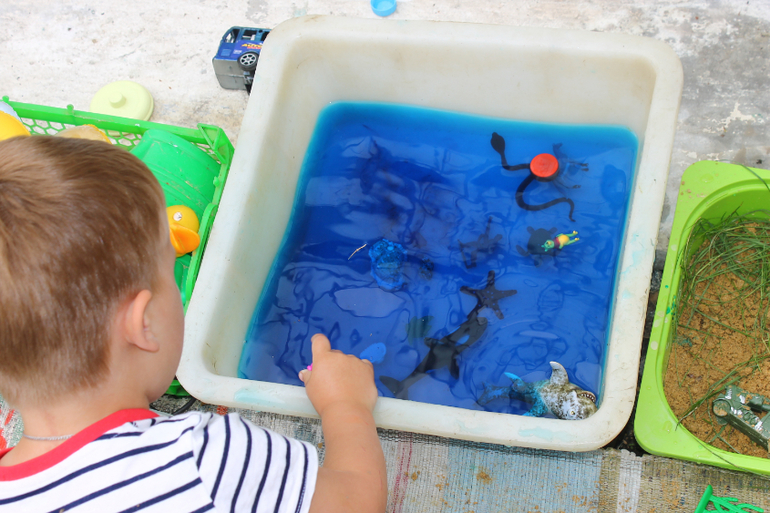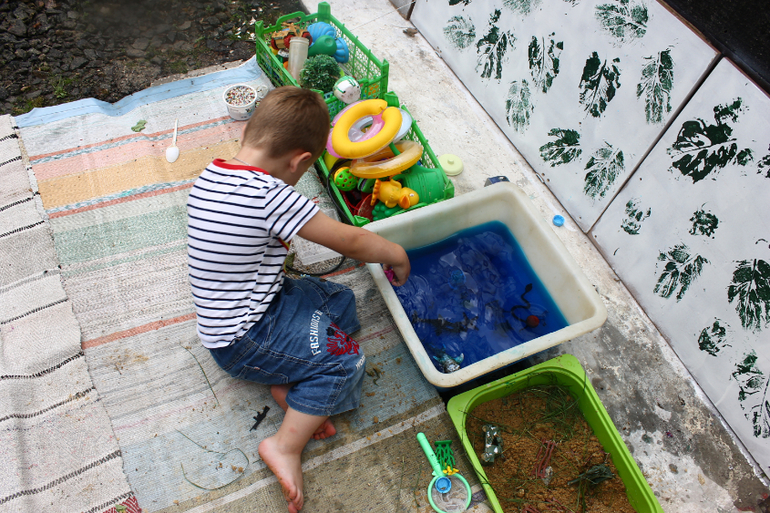 Мне понравилось как дети покреативили, когда просто заливать и смотреть как течет вода им немного наскучило. Они принесли краски и начали смешивать. Саша запускала воду красного цвета, Тема воду синего и смотрели какой цвет получится в конечном итоге на выходе. Понятное дело, что впоследствии все закончилось одинаково серо-буро-малиновой жидкостью, но не в этом суть)