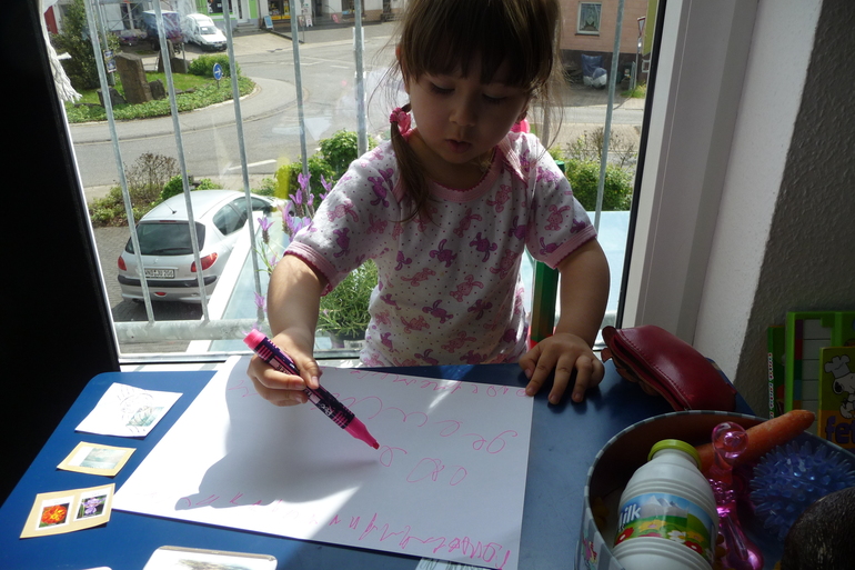 Одним утром Эва сказала, что сегодня будет рисовать ногами. Порисовали) Потом ещё нарисовали букву А и картину " Ладошка-мама и ладошка-дочка"