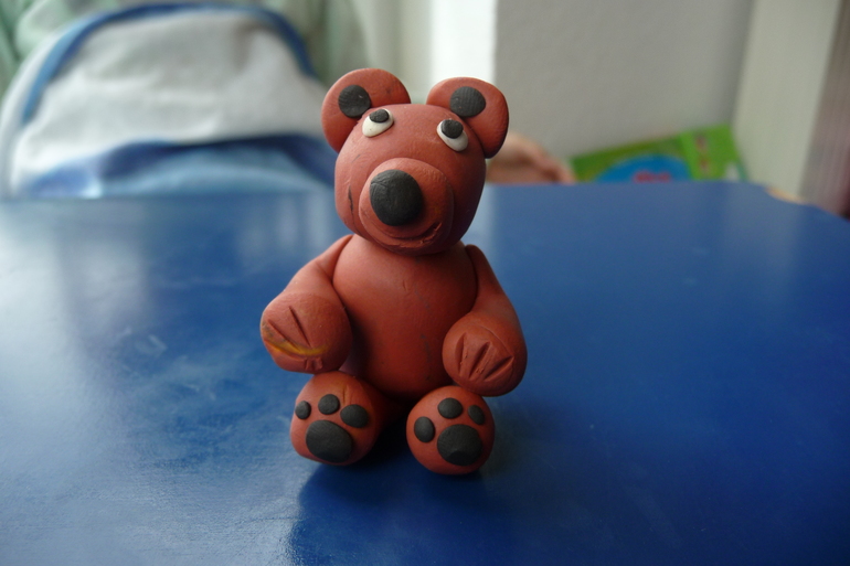 Лепили очередное животное из нашей пластилиновой азбуки. Эвуша была ответственной за лепку шариков, я - за сборку.