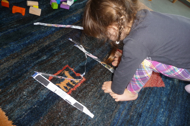 Эвушка рвала журнальчики на полосочки (такая участь у многих журналов, для этих целей берем бесплатные в аптеке), а потом выкладывала букву М.