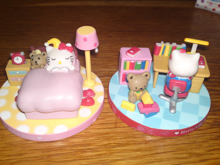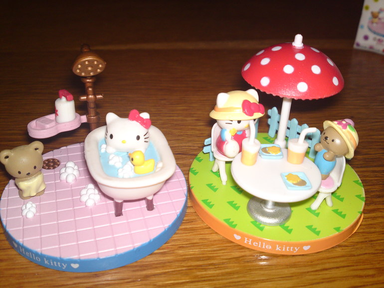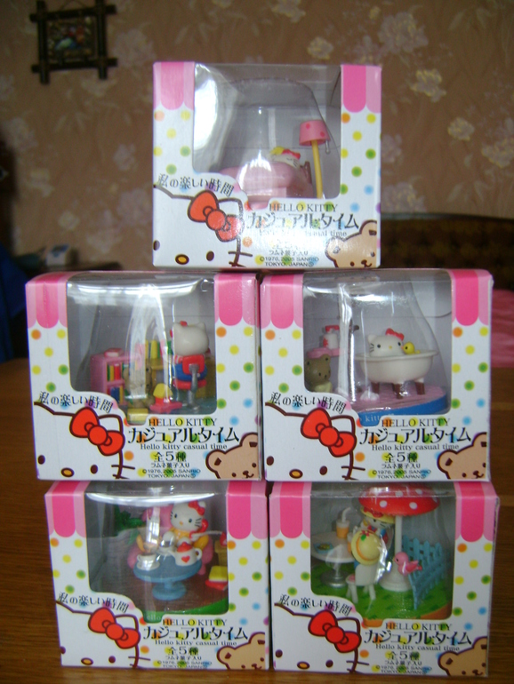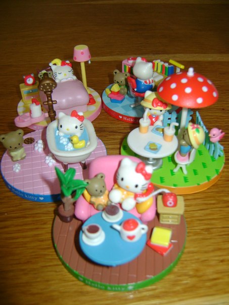 И вот таких 5 миленьких фигурок про Китти и её друга медвежонка)