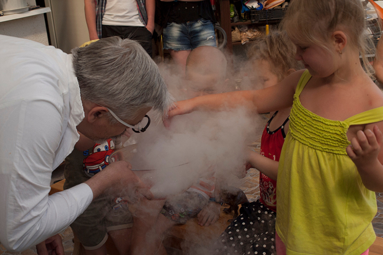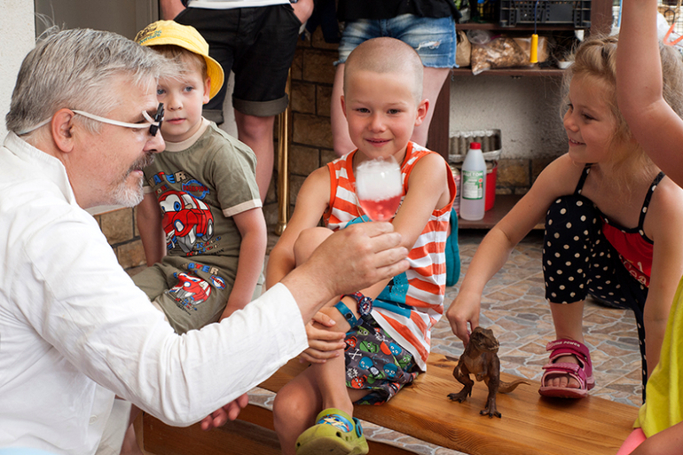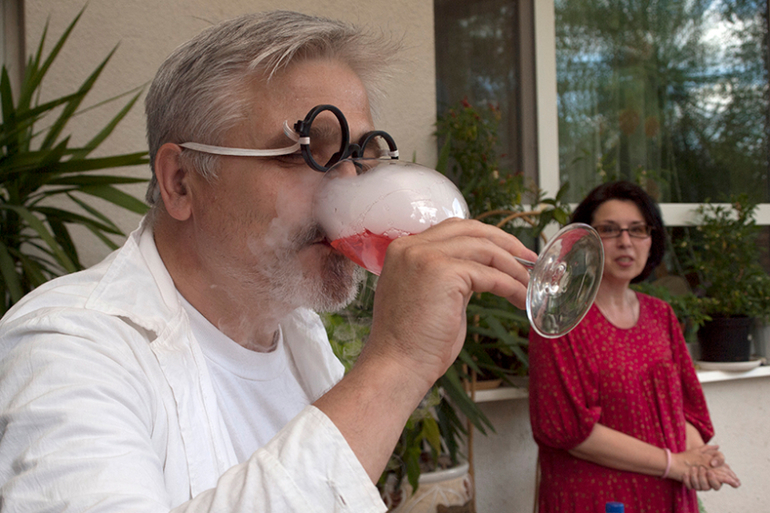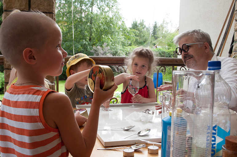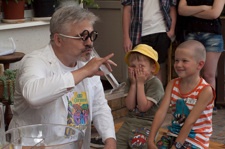 А Руслан был настолько органичен в своем амплуа сумасшедшего профессора, что дети даже сразу поверили, что он-то может выпить всякую гадость, которую обычным людям пить воспрещается)))
