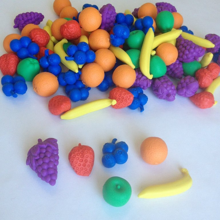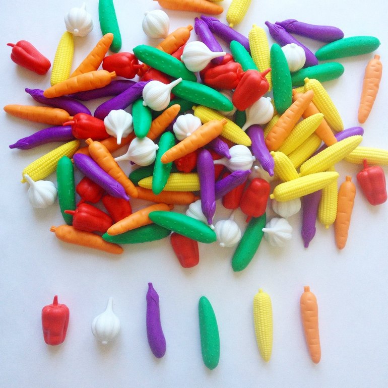 А вот и карточки для игры с резиновыми фигурками - "Продолжи ряд" (овощи-фрукты)