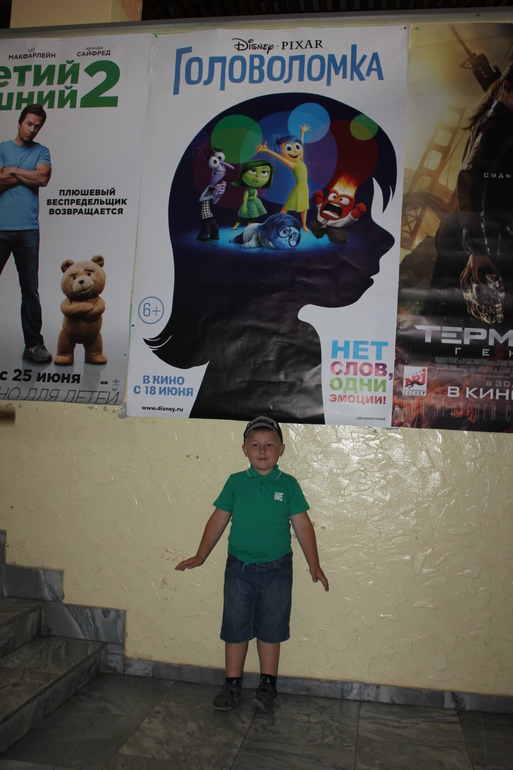В понедельник наслушавшись хороших отзывов мы отправились на мультфильм "Головоломка". Побыли со Славиком вдвоем и посмотрели великолепный мультфильм.
