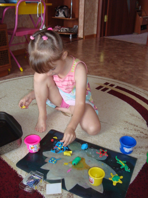 Дочери понравился процесс лепки и запускания морских жителей в воду.