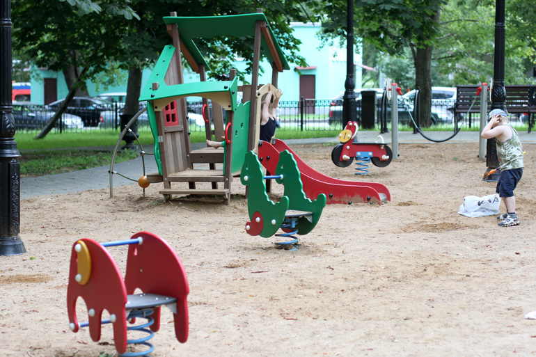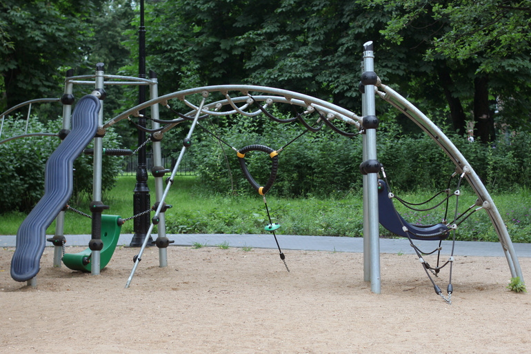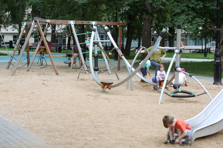 Как таковой центральной детской площадки там нет, весь этот сквер и является детской площадкой. Огромное разнообразия лазалок, балансиров, качелей и тому подобное равномерно рассредоточено по всей территории.