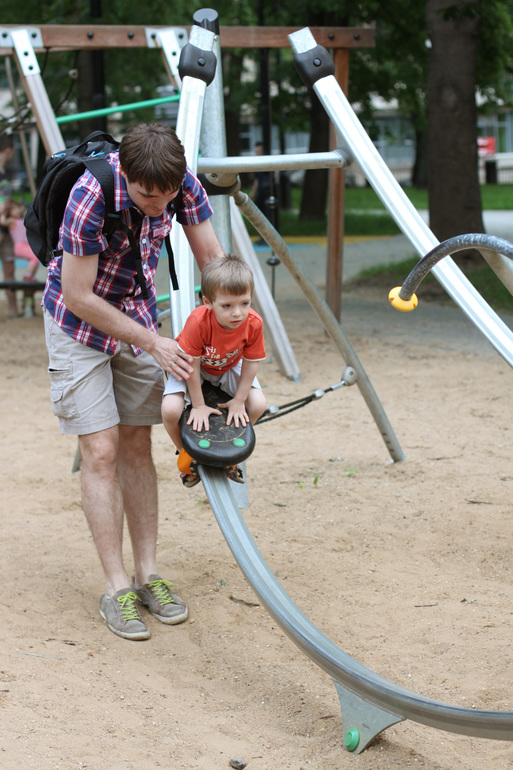 Но самым-самым развлечением и популярностью у сына пользовались качели-луна (так сын назвал). Не знаю их основного способа качания, но у нас двигателем-мотором был папа.