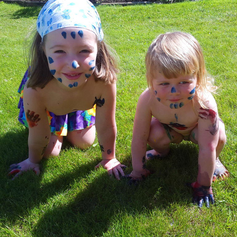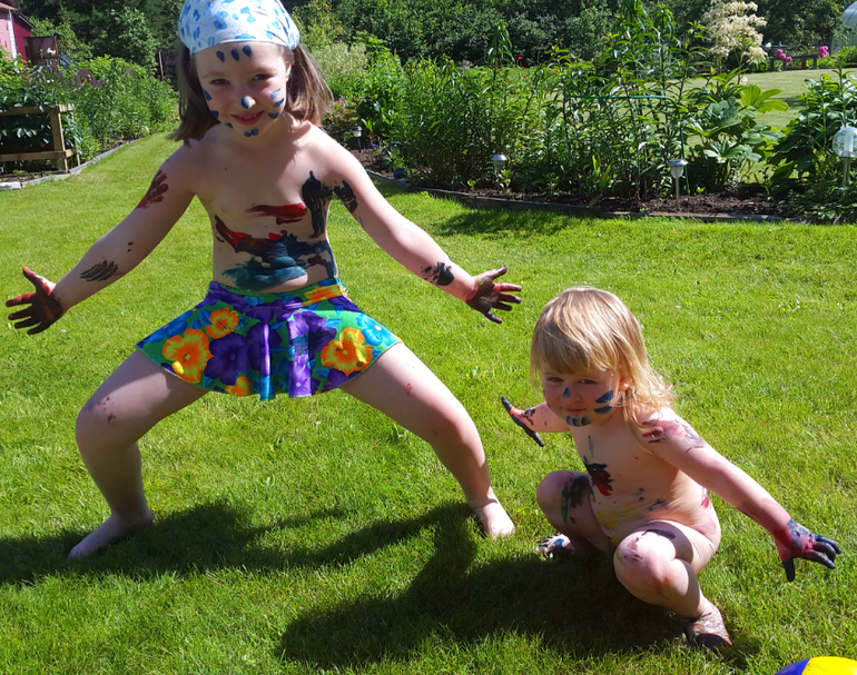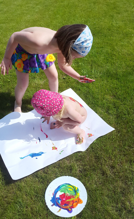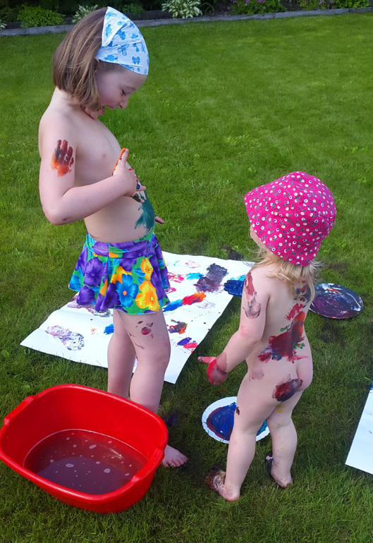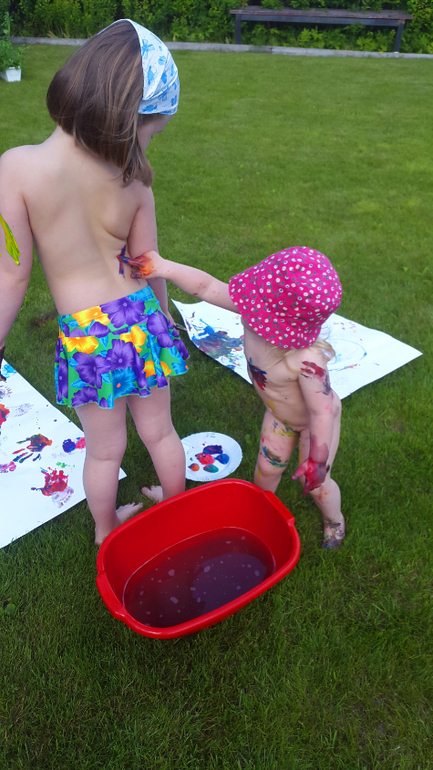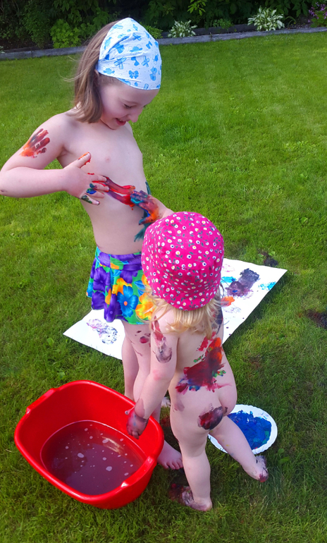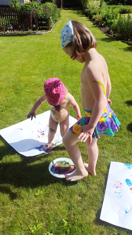 Игры и игрушки от 0 до 99 (Про игры и игрушки которые подойдут и большим и маленьким)Когда лето в полном разгаре, детям нужно давать отрываться! У нас получился яркий день игры в цветные ляпы! Несколько капель гуаши и гонка друг за другом начинается! Закончилось все танцами индейцев и большой стиркой, но счастья, хоть отбавляй!