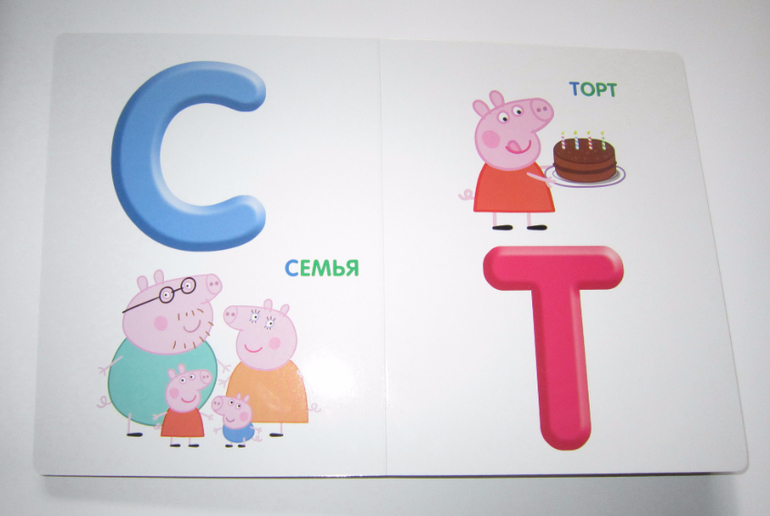 На трёхлетие подарили две книги уже не тоненького формата и стали проявлять интерес к буквам. Сразу больше понравилась книга с очень любимой героиней мультфильма - Пеппой.