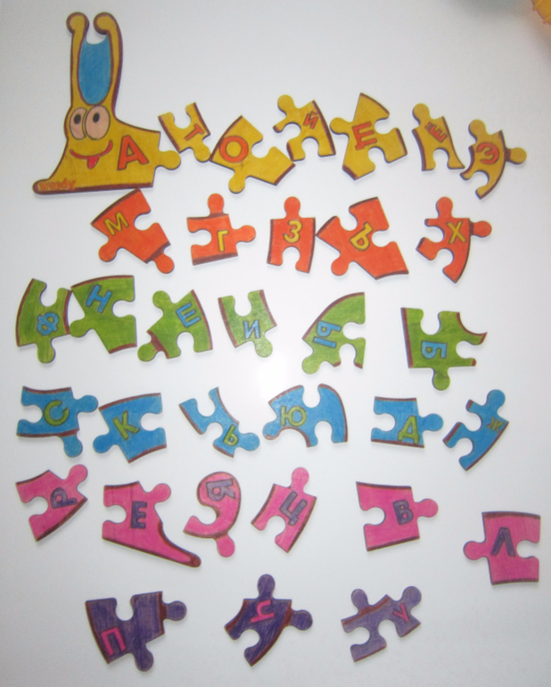 И вот так, собирая пазл самостоятельно в день по 2-4 раза, иногда печатая буквы на компьютере, просматривая книжки и карточки, Дочка за 2 месяца выучила весь алфавит и всю последовательность букв в нем!
