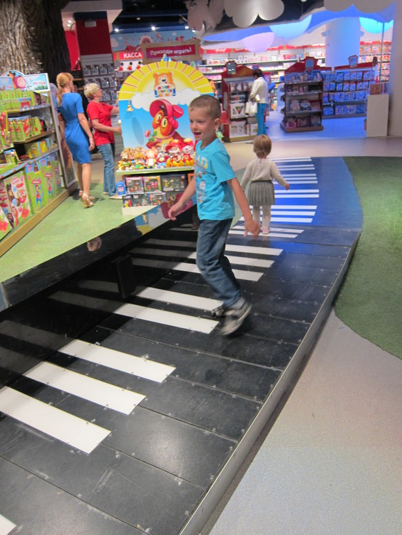 Цель посещения - посмотреть, потрогать, не тратиться. За четыре часа обошли шесть этажей (в бутики не заходили) и испробовали все обнаруженные бесплатные развлечения, которые оказались в большинстве своем интерактивными.