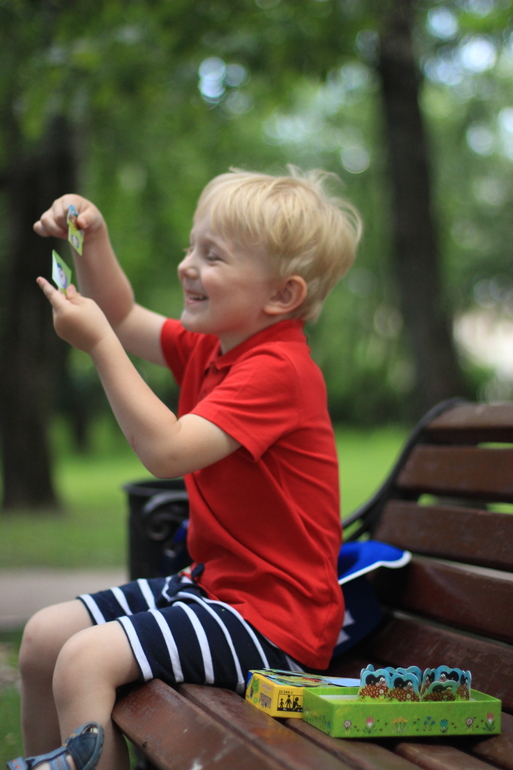 Выигрывает внимательный игрок, который хорошо запоминает расположение карточек. Сначала я думала, что мы будем играть просто на везение, мемо мы не любим как-то, а потом оказалось, что Кирилл прекрасно запоминает, а вот я хуже, так что чаще я проигрываю, но игра замечательно стимулирует быть внимательным, сосредоточиться и тренирует память! Для меня, мамы, это каждый раз тест на внимательность)