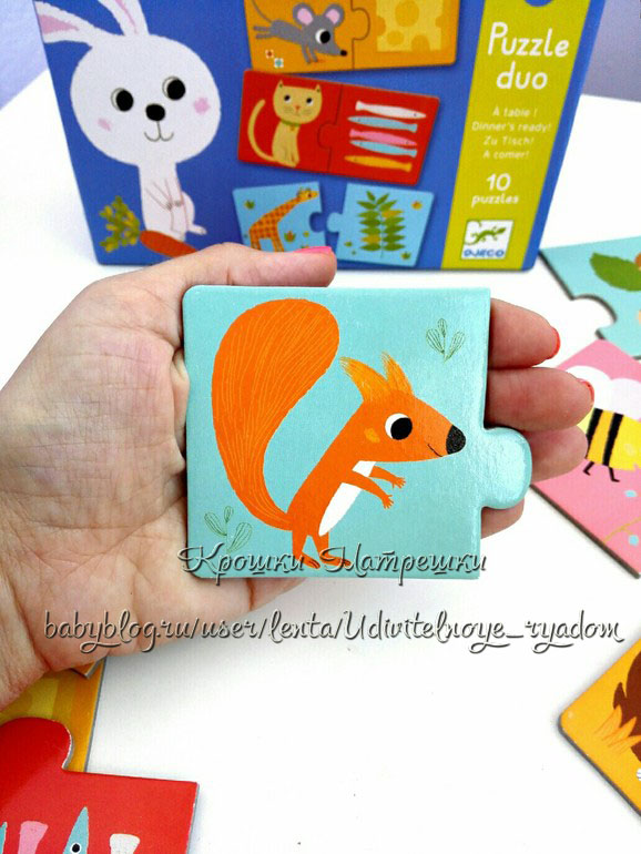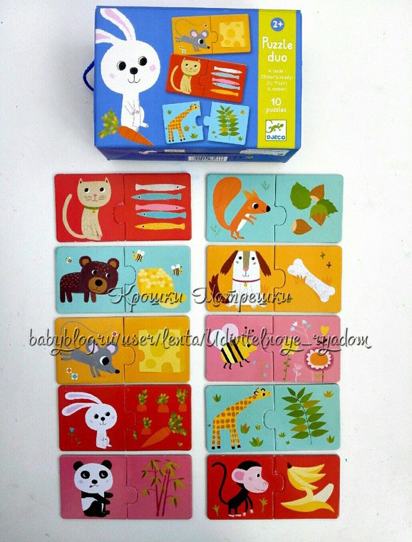Играем с года, по началу Сонечка подбирала только голову соответствующему животному, сейчас собирает полностью, но ей трудно, видно как мозги шевелятся!