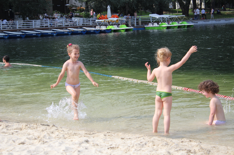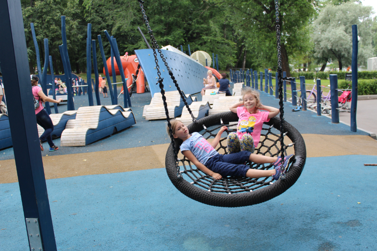 Парк Горького затягивает. Оказывается, там столько всего интересного, вот и смотровую площадку на воротах открыли, обсерватория есть своя. Его возможности нам только предстоит открыть. Пока же мы познакомились с площадкой (ничего сверхнового, детей много, объекты довольно опасные, не расслабишься). Побывали в ресторане "Веранда", побегали под поливальными установками (дети, дети, не мы!), пошутили про то, что сказку про Водяного надо было слушать рядом с таким вот "душем") Покушали паркового мороженного, погоняли белочку. Ну и напоследок, мамина бдительность и брезгливость была сломлена, и ребенок искупался в "Пионерском" пруду. Без комментариев.