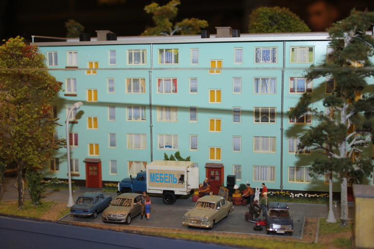 КАк раз вот на фото кусочек макета...И Славик нажимал кнопочку... Рабочий начал красить здание, другой долбил асфальт... Эти маленькие человечки просто ожили.