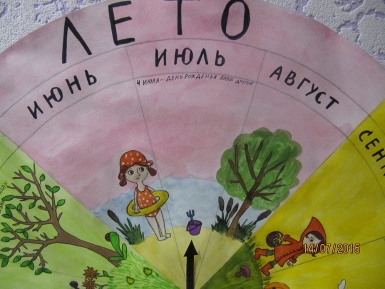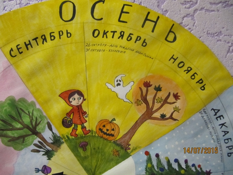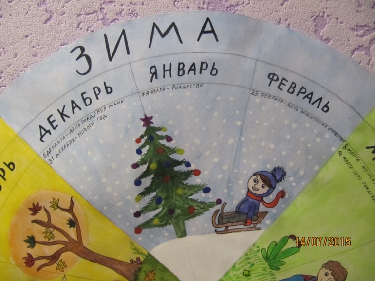 Никак ребёнок не может запомнить -какой сезон за каким идет. Вот получился такой календарь. на нем подписаны основные праздники и дни рождения.
