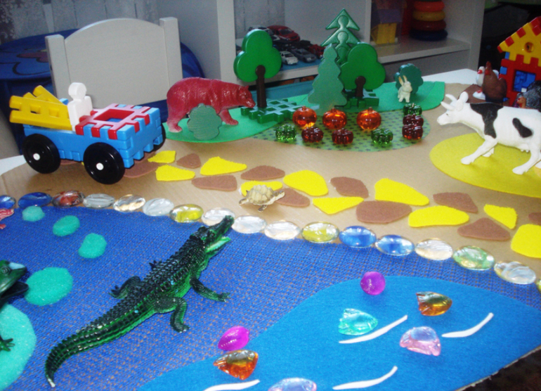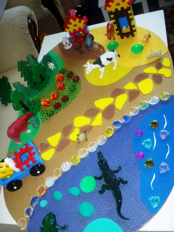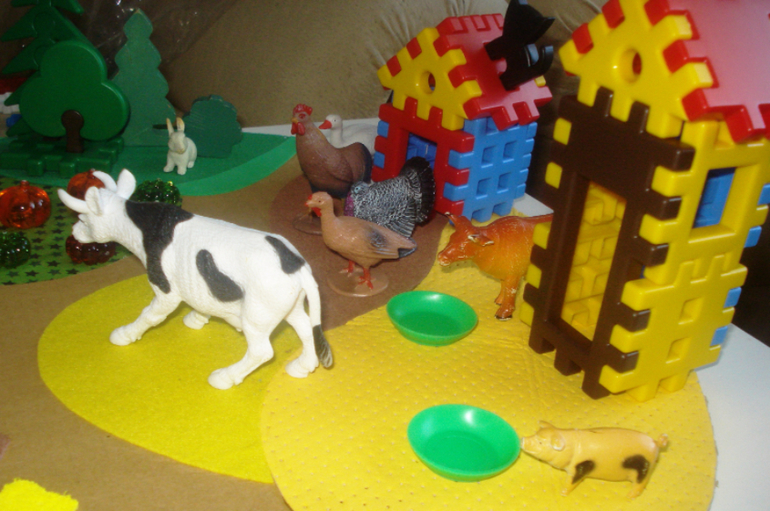 2. сюжетно-ролевые игры - например, в ферму, в зоопарк… Можно использовать конструкторы, машинки, фигурки людей, животных, деревьев и кустарников, овощей и фруктов, камешки…