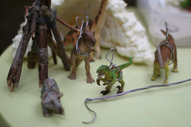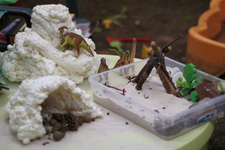 Потом мы решили, что нашим динозаврам вряд ли могли нравится такие извержения, ведь настоящая лава очень горячая. Тогда мы стали их дружно спасать.