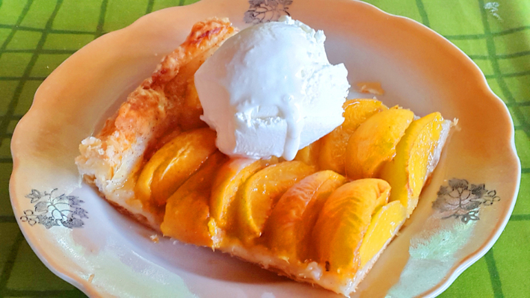 Кстати, рецепта никакого нет...тесто слоеное покупное бездрожжевое марки Цезарь на сливочном масле - мое самое любимое!Тонко раскатала, предварительно разморозив, ванилин, сахар, корица, кардамон по вкусу и желанию. Сверху абрикосов распрыскала виски на меде, можно коньяк. Печь минут 30-40 до золотистой корочки! Подавать с мороженым или мягким сыром, или взбитыми сливками!