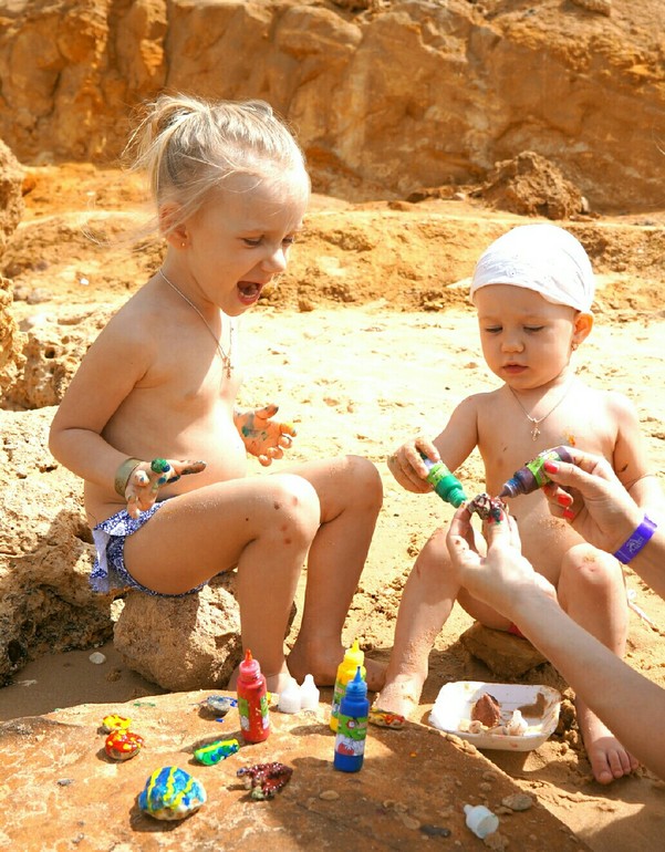 На отдых мы брали с собой акриловые краски. И прямо на пляже сидели и разрисовывали камушки, кораллы и ракушки.