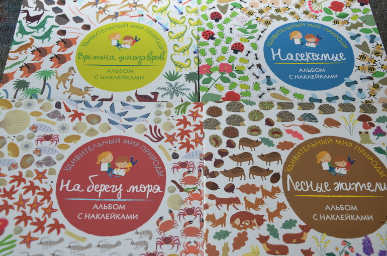 В каждой книге предлагается выполнить, помимо наклеивания, еще какие-то задания - раскрасить, придумать, нарисовать+ на каждой странице есть познавательная часть. Универсально пособие получается).