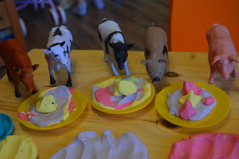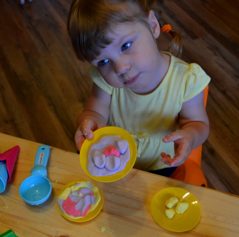 Ну а в конце, изрядно помяв наш пластилин и изучив все его свойства и возможности, мы конечно же устроили мини домашнюю кондитерскую - накормили всех животных нежнейшими десертами собственного производства